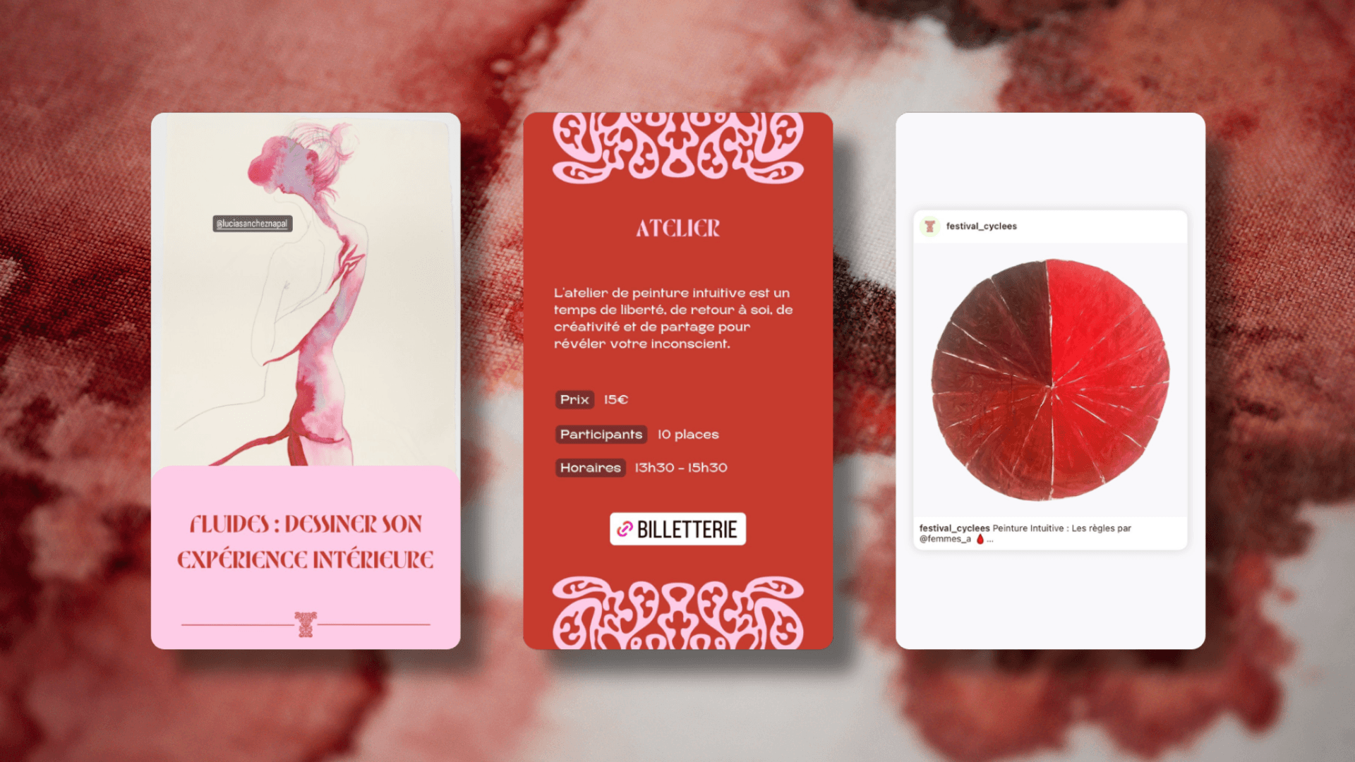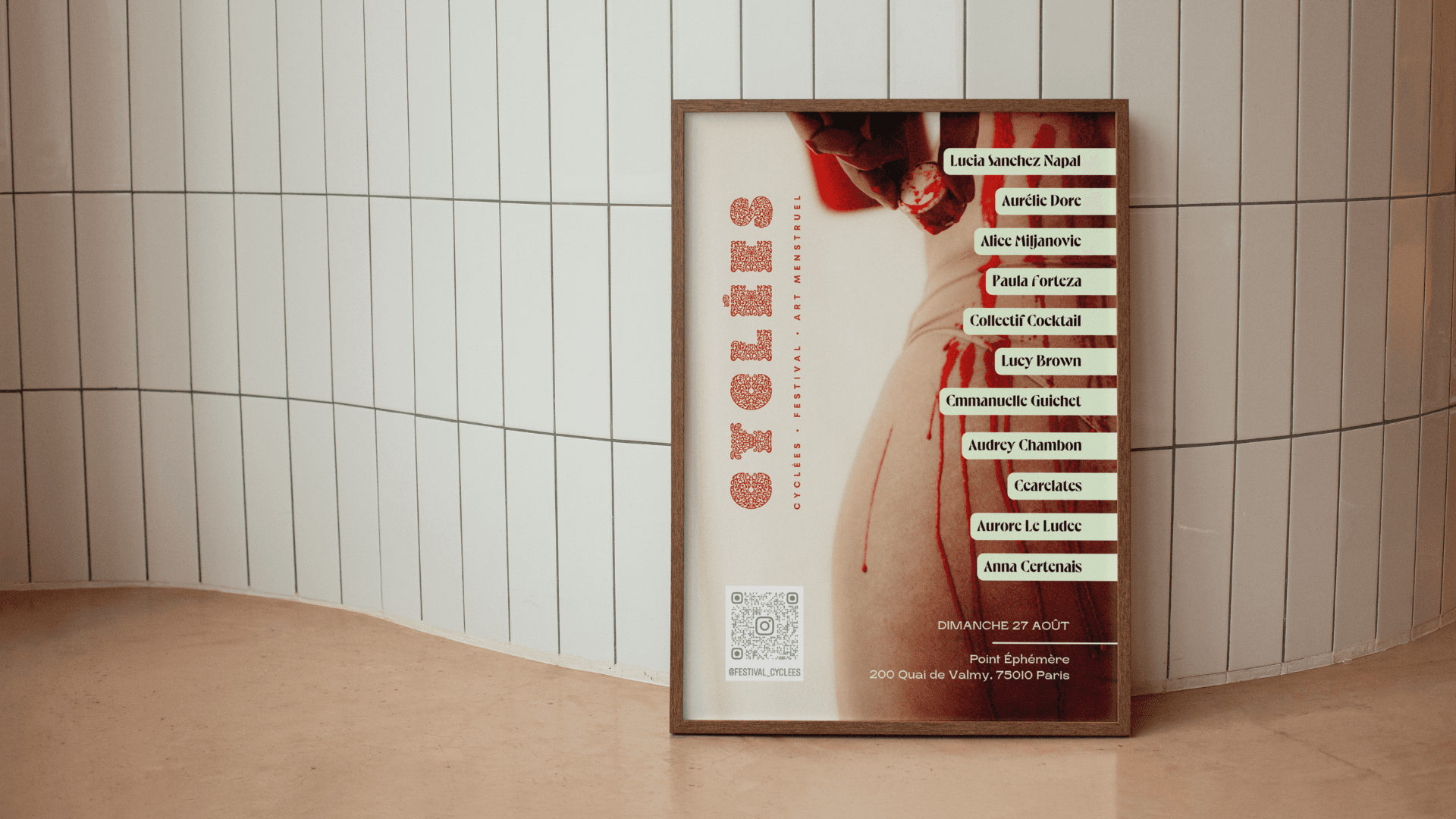 Le Festival Cyclées est un événement pluridisciplinaire qui réunit des artistes de différents horizons sur la thématique du cycle menstruel. Il s’articule autour d’une programmation variée : projection audiovisuelle, exposition artistique, performances de danse, ateliers interactifs, table ronde… La cliente nous a convié à la gestion du projet et la communication de la toute première édition.